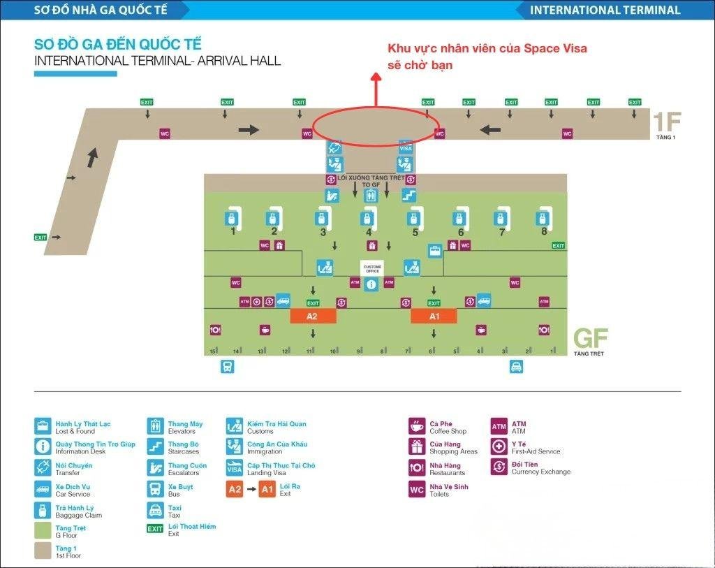 Khi chuyến bay hạ cánh tại sân bay Việt Nam, Space Visa sẽ chào đón tại khu vực Nhập cảnh với bảng tên chào mừng để bạn dễ nhận diện. Chuyên viên hướng dẫn qua các bước cần thiết, hỗ trợ hành lý và (khi áp dụng) điều phối qua làn ưu tiên để rút ngắn thời gian chờ.